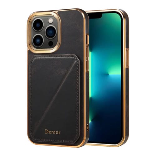 Funda para Teléfono Denior Oil Wax Leather para iPhone 13 Pro Max con Ranura para Tarjeta (Negro)