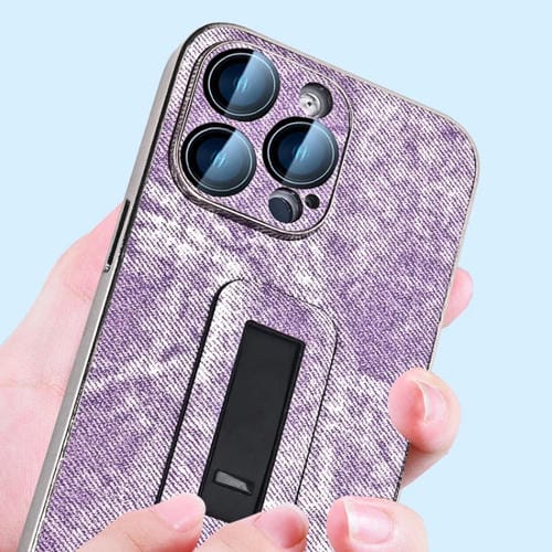 Funda para Teléfono iPhone 13 Pro Max Soporte Push-Pull Galvanizado Patrón Mezclilla (Negro)