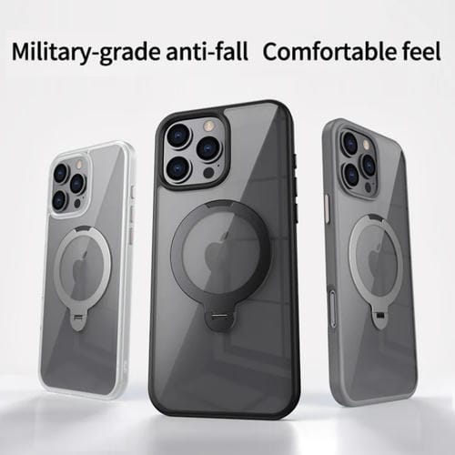 Funda para iPhone 13 Pro Max Transparente con Soporte de Anillo Giratorio Magnético Magsafe (Negro)