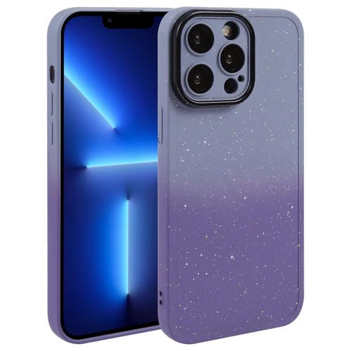 Funda de Silicona para iPhone 13 Pro Max Gradient Starry con Película de Lente (Gris Púrpura)