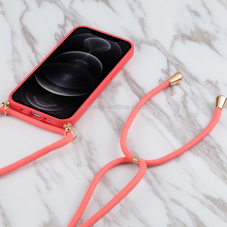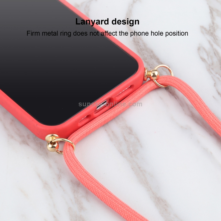 Funda para iPhone 13 Pro Max Material de Paja de Trigo Estuche TPU a Prueba de Golpes con Cordón para el Cuello (Rojo)