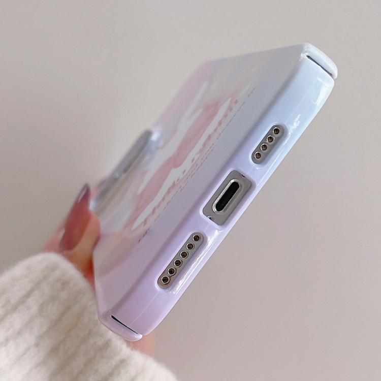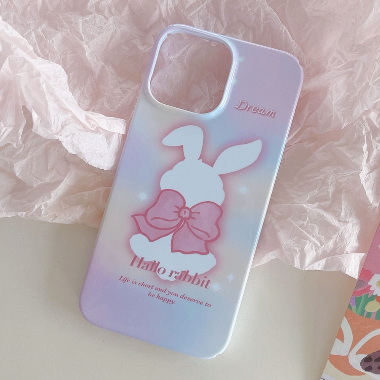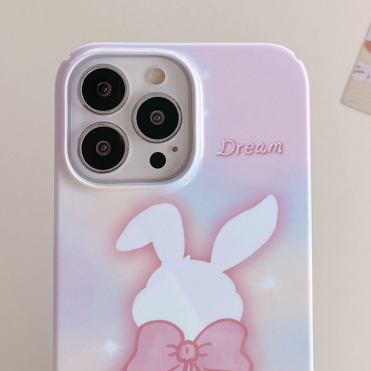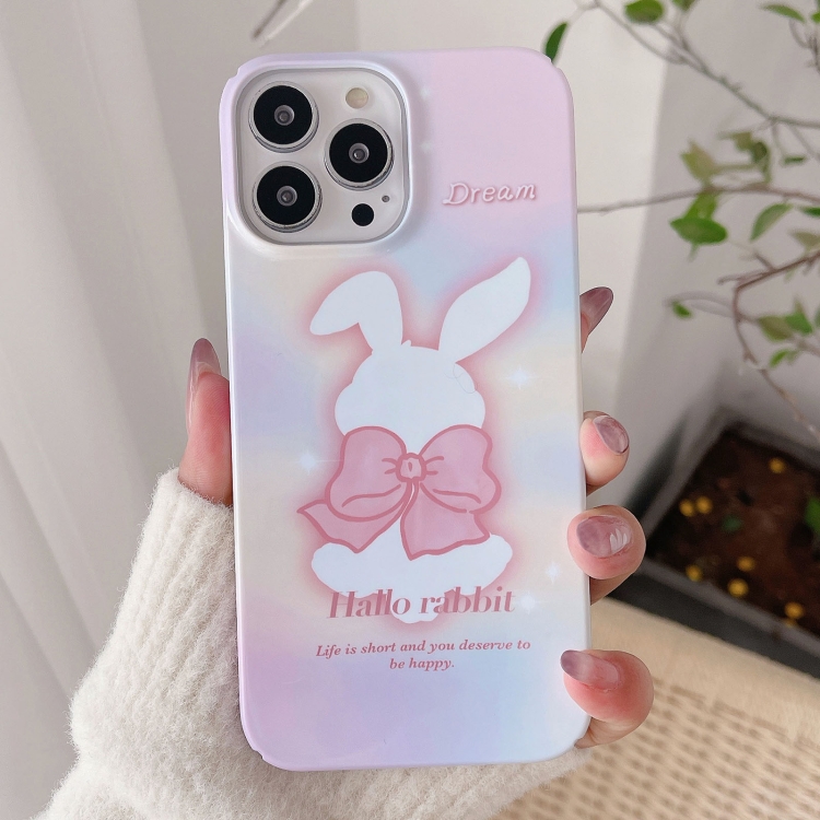 Funda para iPhone 13 Pro Max Painted Pattern PC Phone Case con diseño Pink Bowknot Bunny