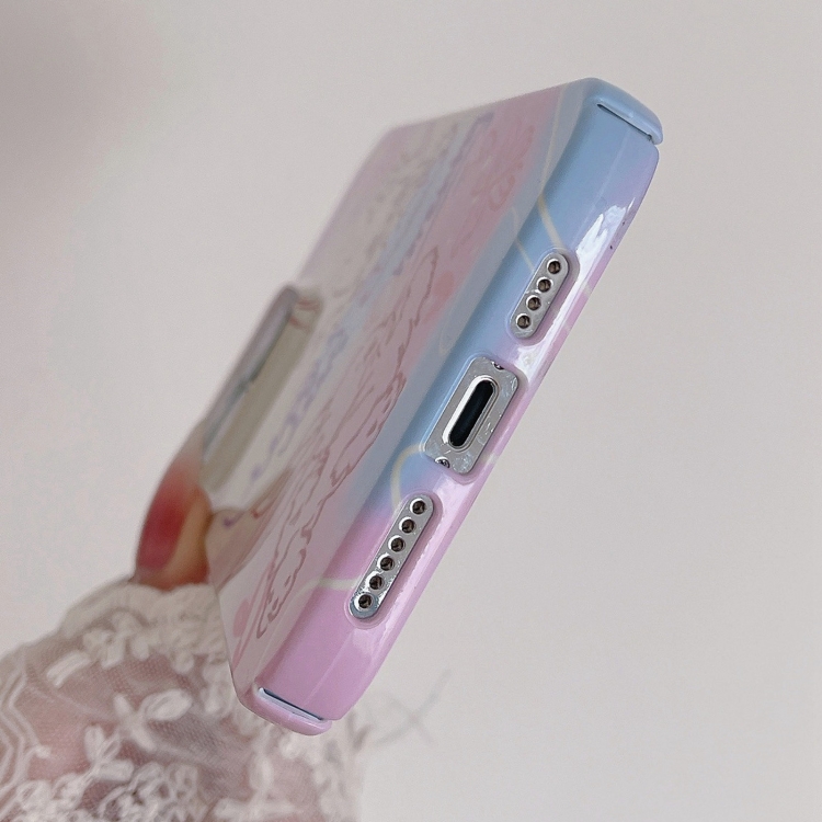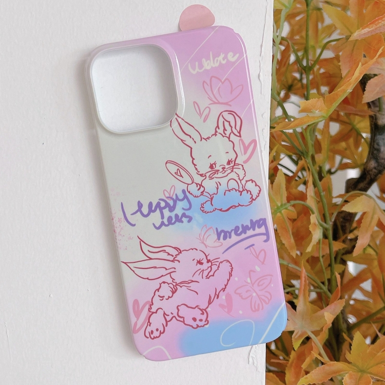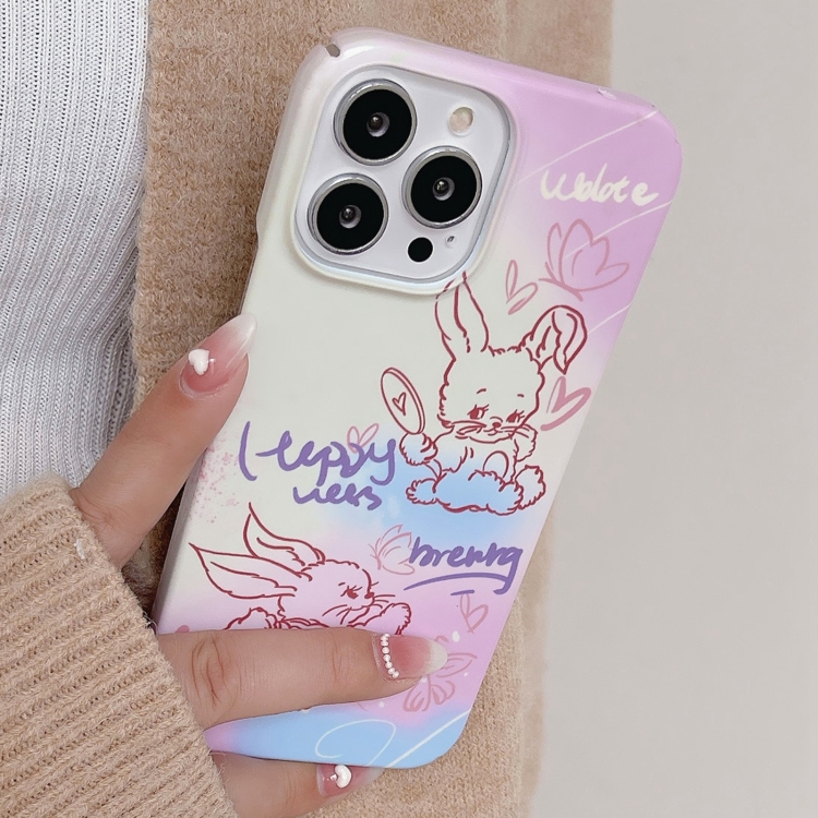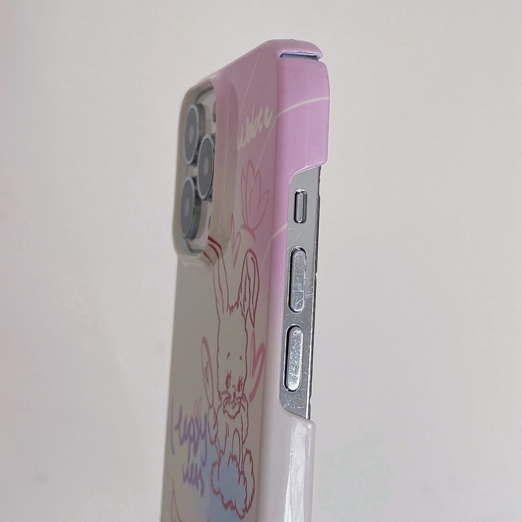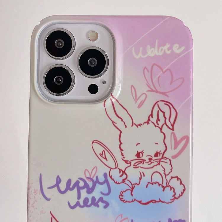 Funda para iPhone 13 Pro Max Painted Pattern PC Phone Case con diseño Pink Line Bunny