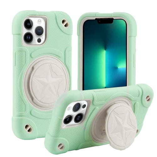 Funda híbrida para teléfono iPhone 13 Pro Max Shield PC de silicona (Verde Fresco)