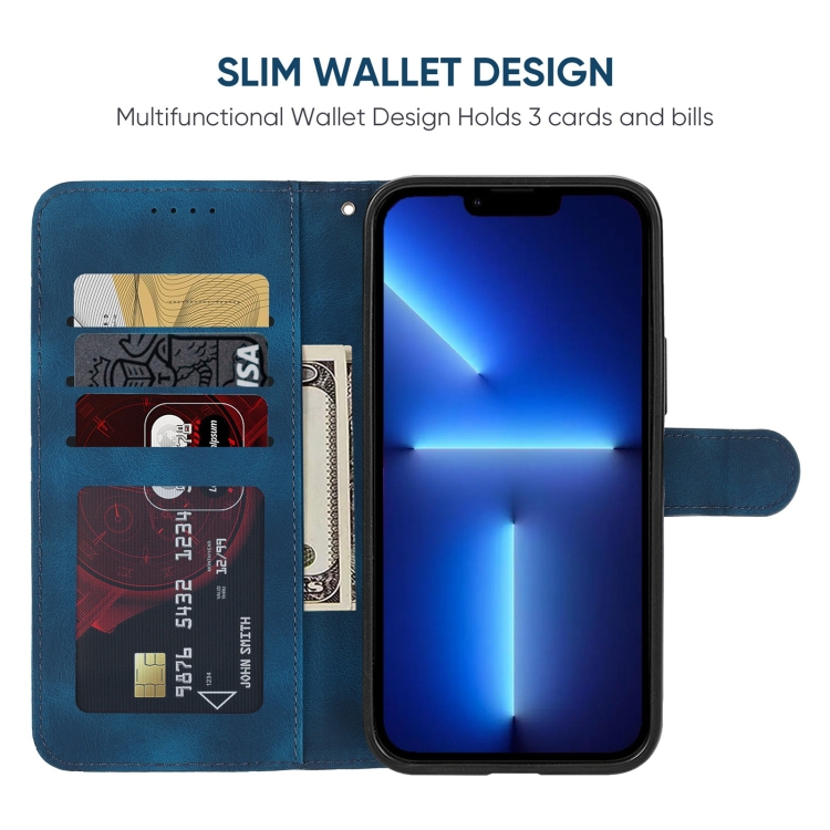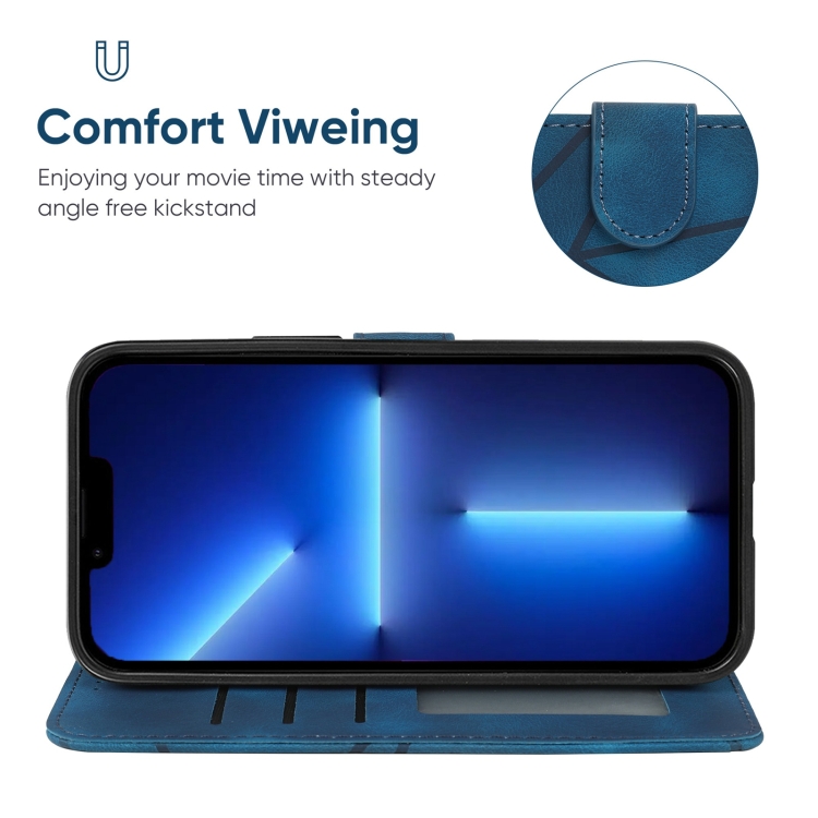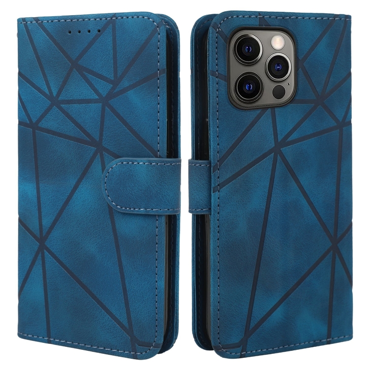 Funda para iPhone 13 Pro Max Skin Feel de Cuero con Líneas Geométricas (Azul)