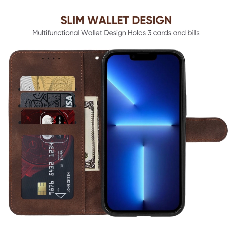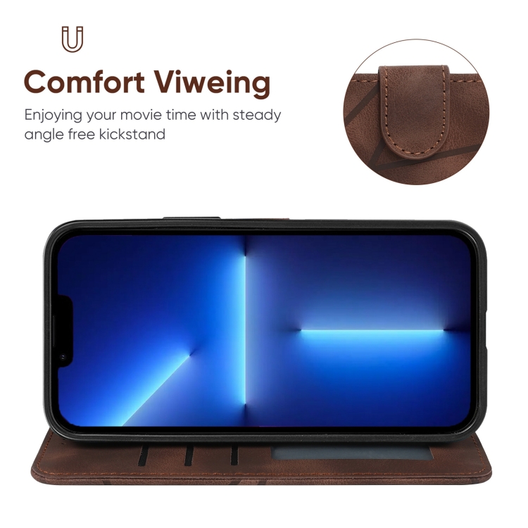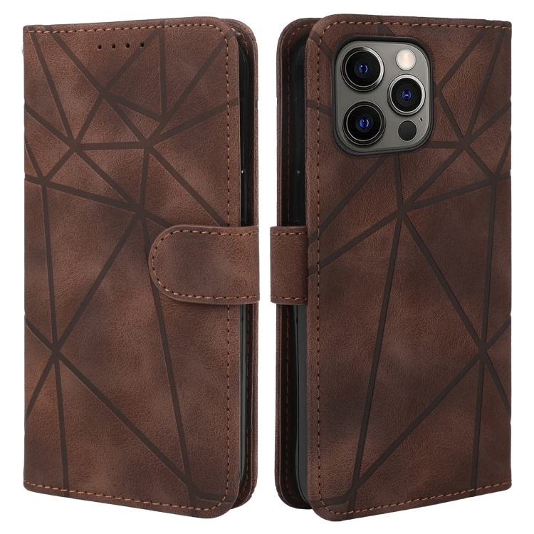 Funda para iPhone 13 Pro Max Skin Feel de Cuero con Líneas Geométricas (Marrón)