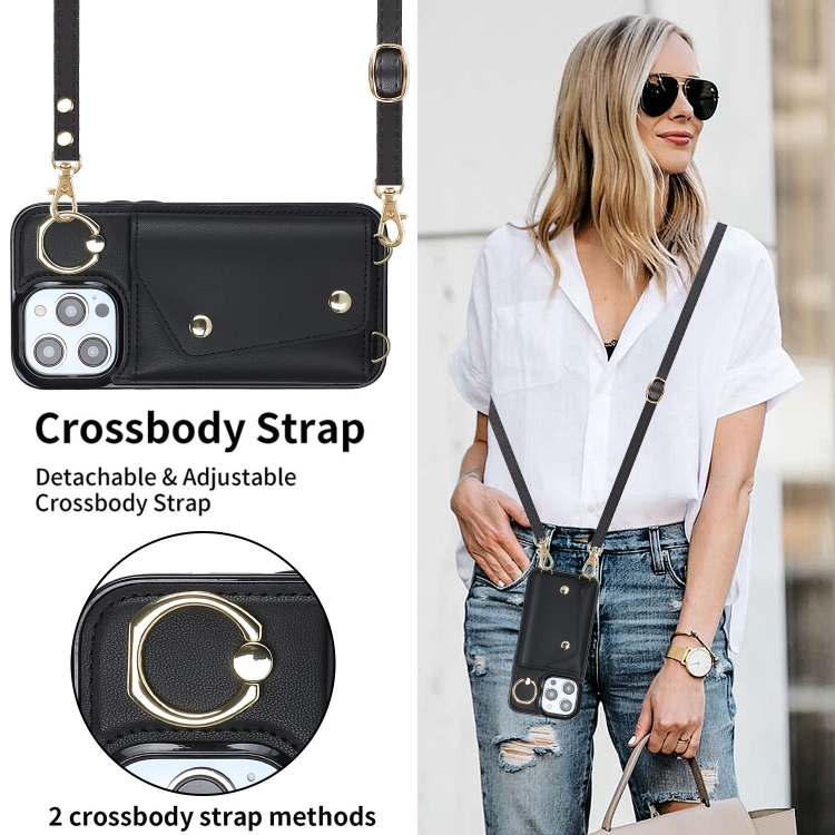 Funda para iPhone 13 Pro Max Zipper Card Bag con Doble Cordón (Negro)