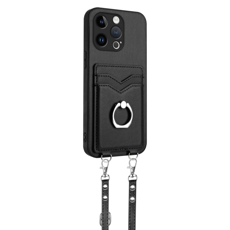 Funda para Teléfono iPhone 13 Pro R20 con Soporte para Tarjeta y Anillo de Cuerda Cruzada (Negro)