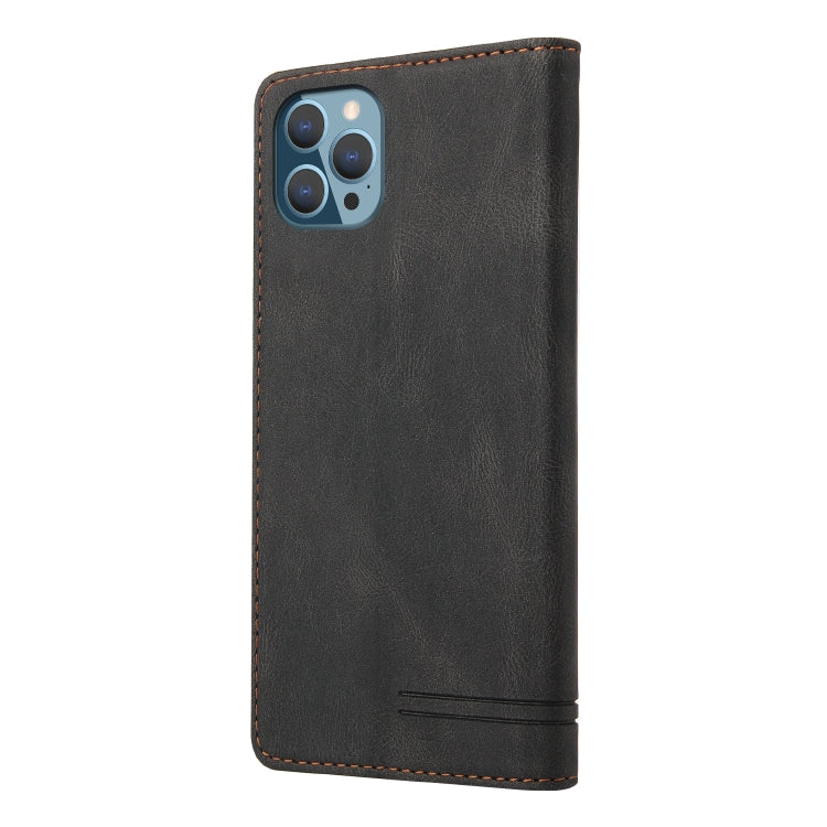 Funda de Cuero para iPhone 13 Pro Skin Feel con Tapa Horizontal, Cepillo Antirrobo, Soporte, Ranuras para Tarjetas y Billetera (Negro)