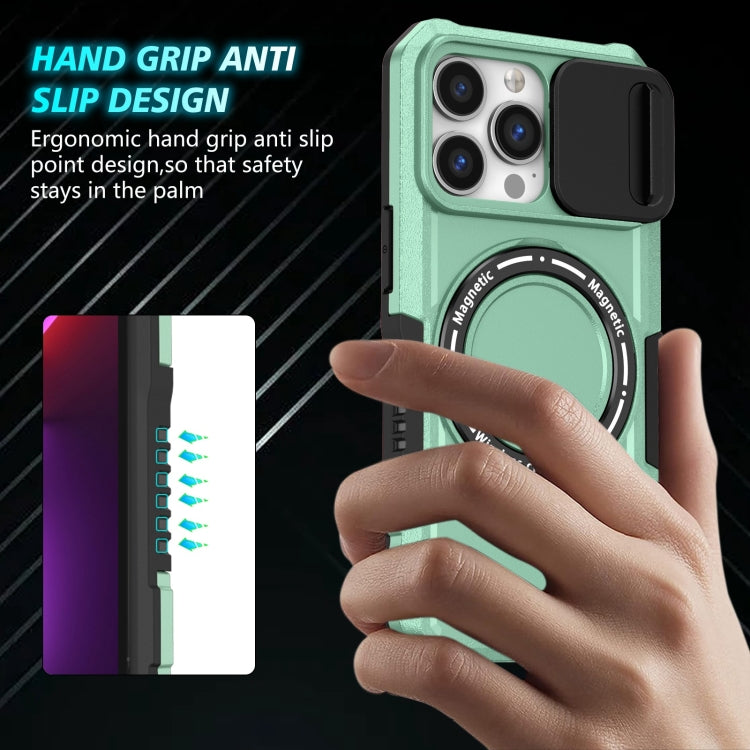 Funda para teléfono iPhone 13 Pro Sliding Camshield Magsafe Holder TPU Hybrid (Azul Claro)
