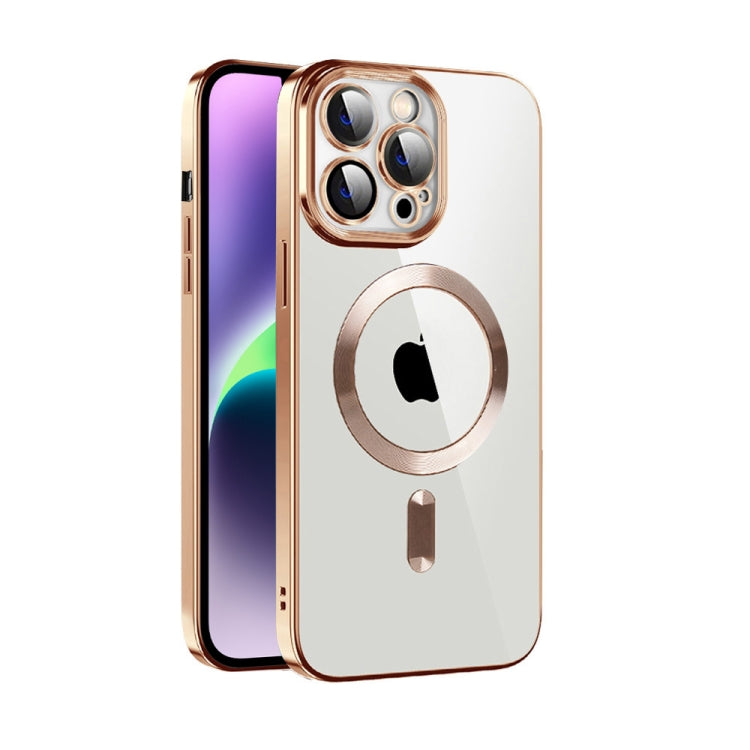 Funda para teléfono iPhone 14 Cd Textura Plating TPU Magsafe con Película de Lente (Marrón)