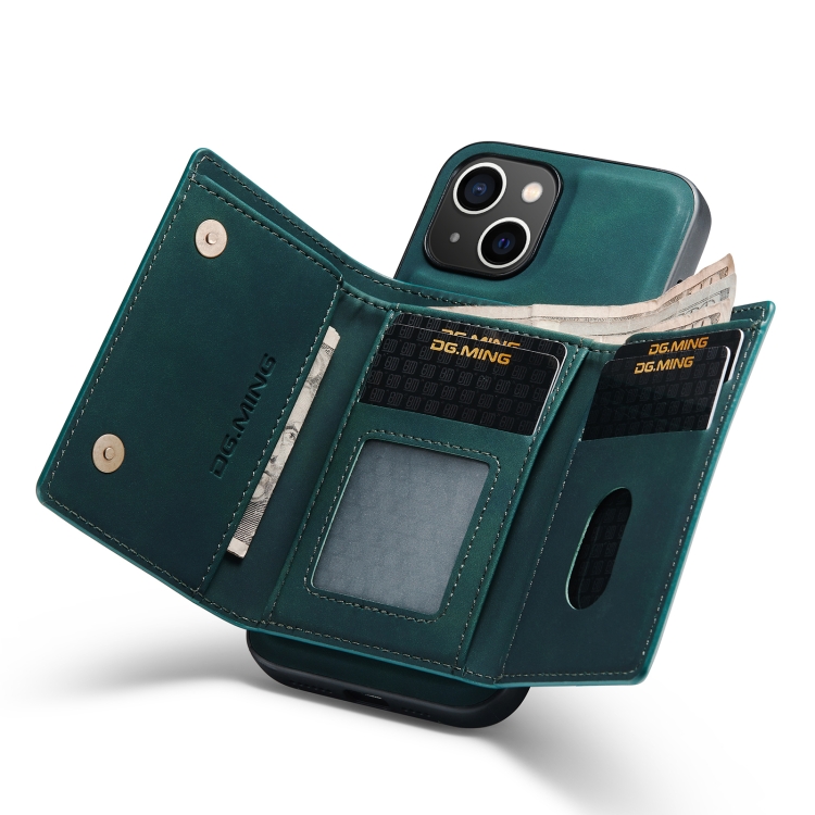 Funda de Cuero Dg.Ming M1 Series para iPhone 14 3-Fold Multi Card Wallet (Verde)