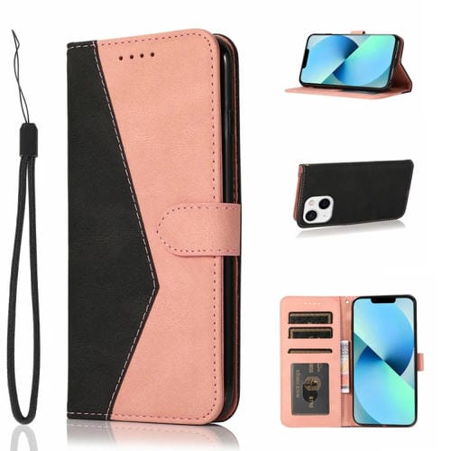 Estuche para Teléfono iPhone 14 Cuero Costuras Dos Colores (Negro Rosa)