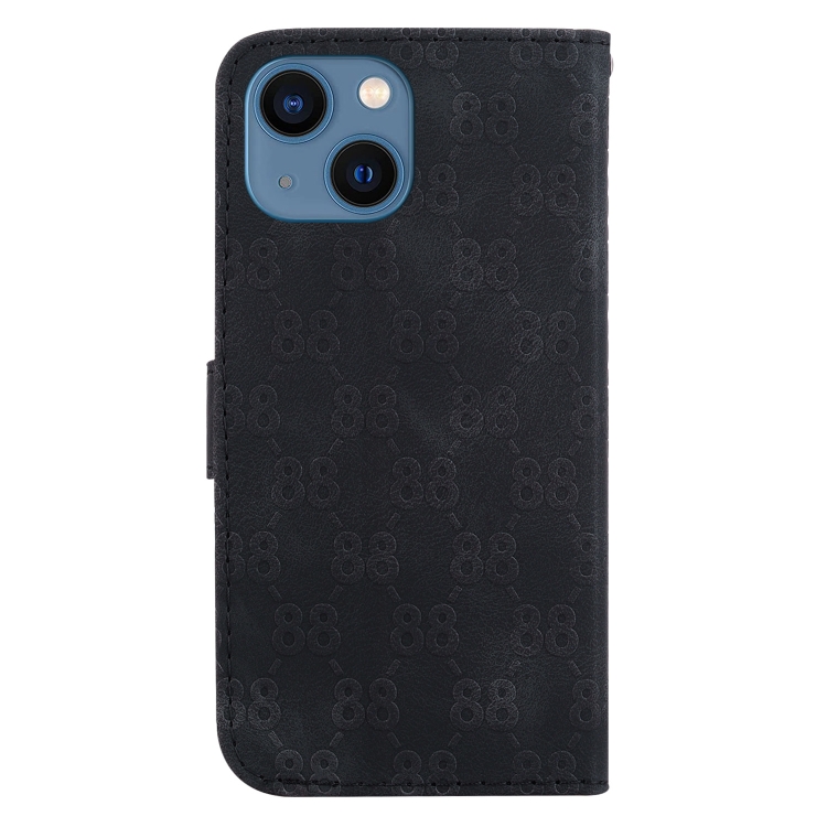 Estuche para Teléfono iPhone 14 Cuero En Relieve Doble Forma de 8 (Negro)