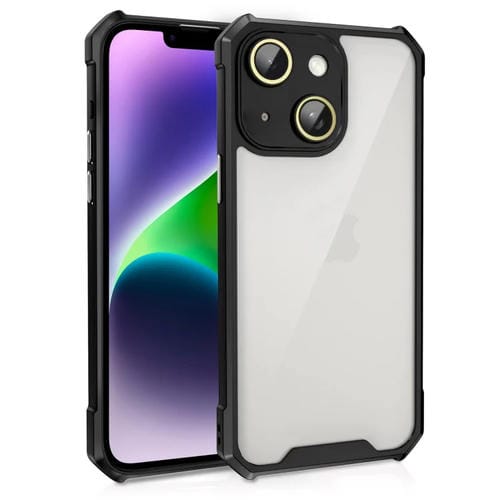 Funda para teléfono iPhone 14 Acrílico a prueba de golpes con Película de vidrio para Lentes (Negro)