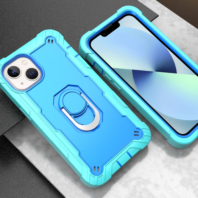 Funda para Teléfono iPhone 14 con Soporte de Anillo (Verde Menta + Azul)