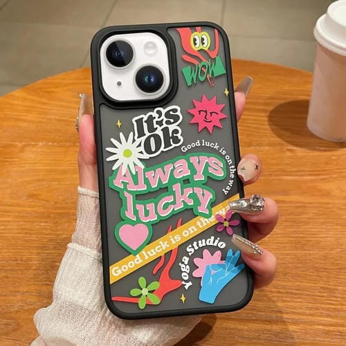 Funda para teléfono iPhone 14 Noctilucente con Graffiti de Moda (Lucky)
