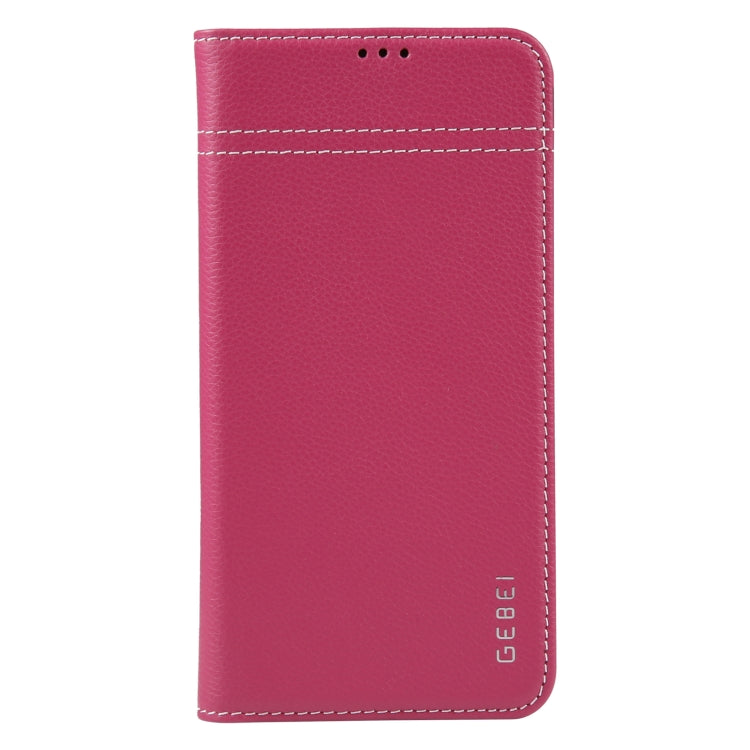 Funda de Teléfono Gebei iPhone 14 Cuero con Tapa Horizontal Grano Superior (Rosa Roja)
