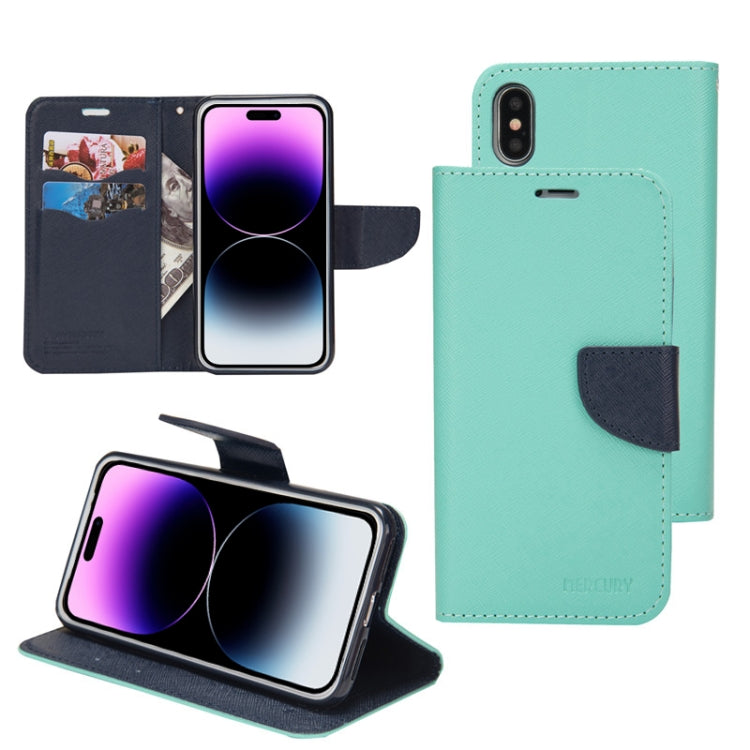 Funda de Cuero para iPhone 14 Mercury Contrast Color Splicing (Menta)