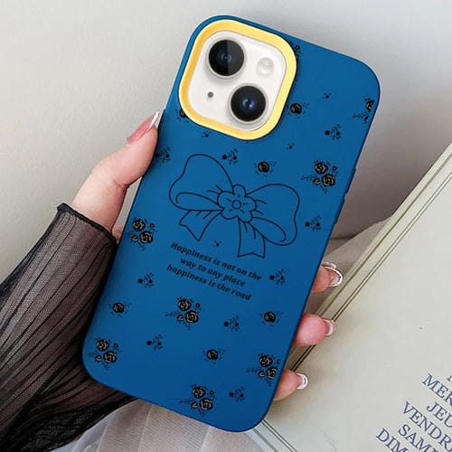 Funda para Teléfono híbrida TPU y PC para iPhone 14 Plus con Lazo Floral (Azul Real)