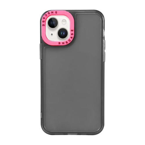 Marco de Lente de Contraste de Color Caja de Teléfono TPU para iPhone 14 Plus (Negro + Rosa Roja)