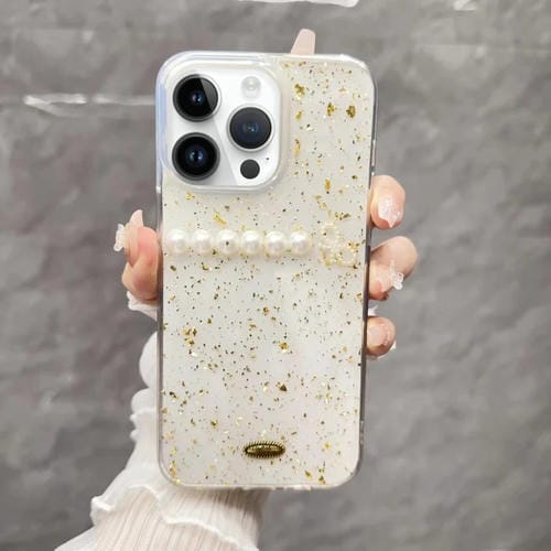 Estuche para Teléfono TPU iPhone 14 Pro con Lazo de Perlas y Lámina Dorada (Perla)