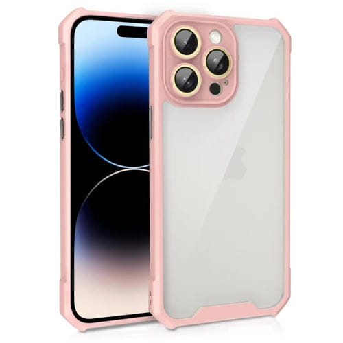 Estuche Acrílico para iPhone 14 Pro Max a Prueba de Golpes con Película de Vidrio para Lentes (Rosa)