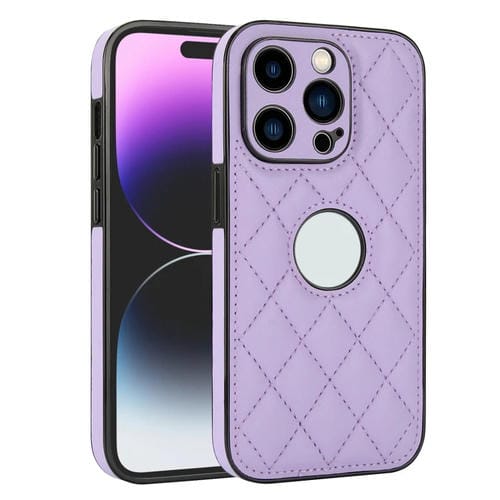 Funda para Teléfono iPhone 14 Pro Max Contraportada de Cuero Rómbico (Púrpura)
