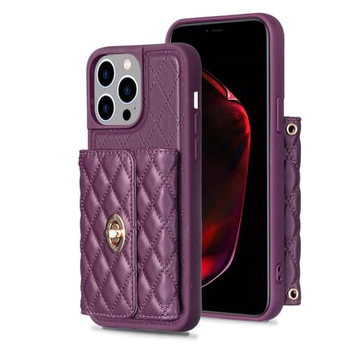Funda para iPhone 14 Pro Max Rombal Cuero con Hebilla de Metal Horizontal (Morado Oscuro)