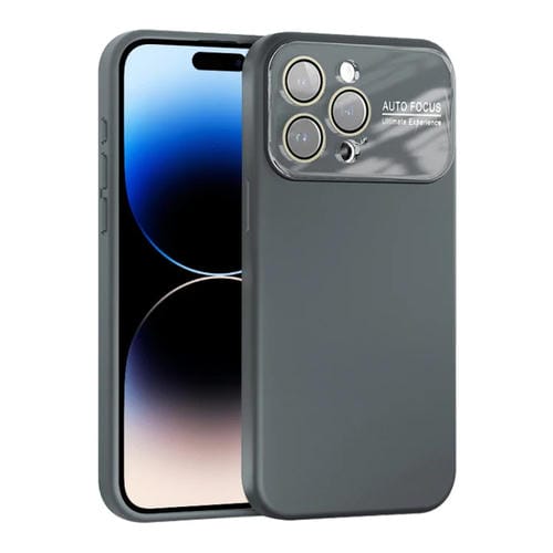 Película de Lente Acrílica y Funda Silicona Líquida para iPhone 14 Pro Max Cobertura Total (Gris)