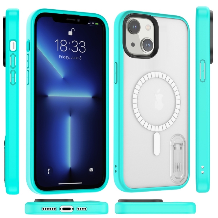 Funda para Teléfono Terminator Magsafe para iPhone 14 con Soporte Magnético (Cian-Azul Transparente)