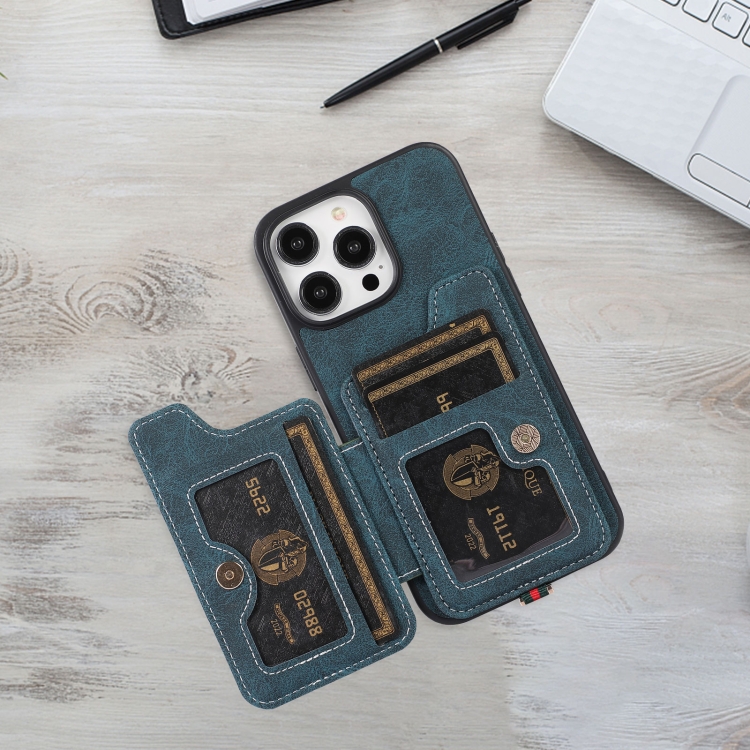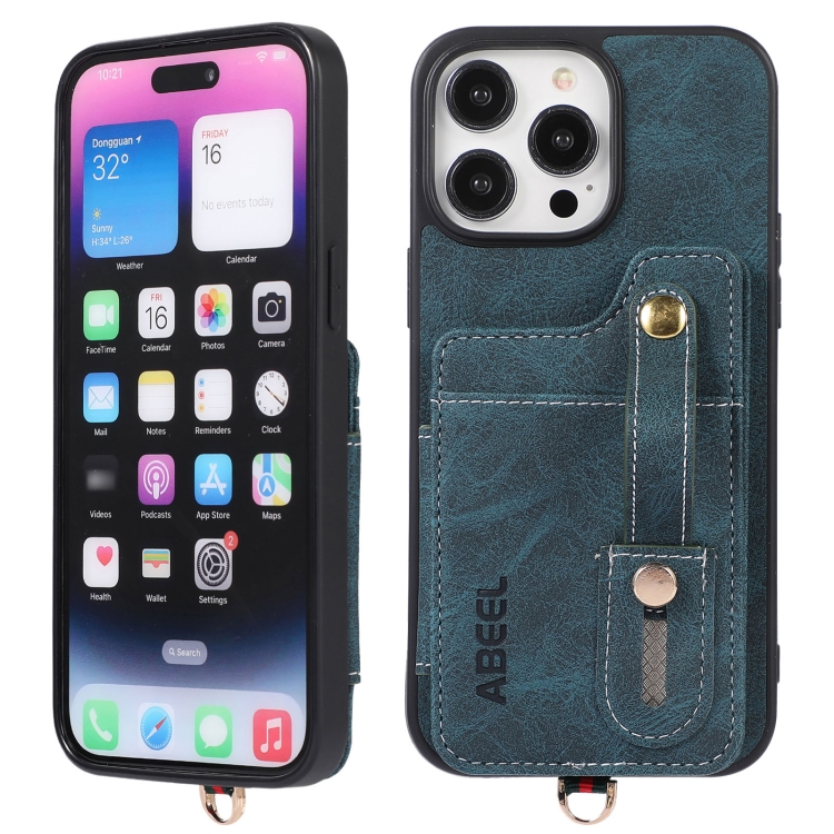 Funda para iPhone 15 Abeel Litchi Texture Card Bag PU Phone Case (Azul)