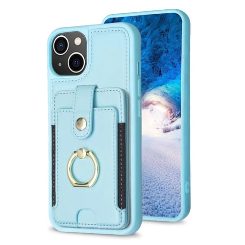 Funda para Teléfono iPhone 15 Bf27 con Soporte Tarjeta y Anillo de Metal (Azul)
