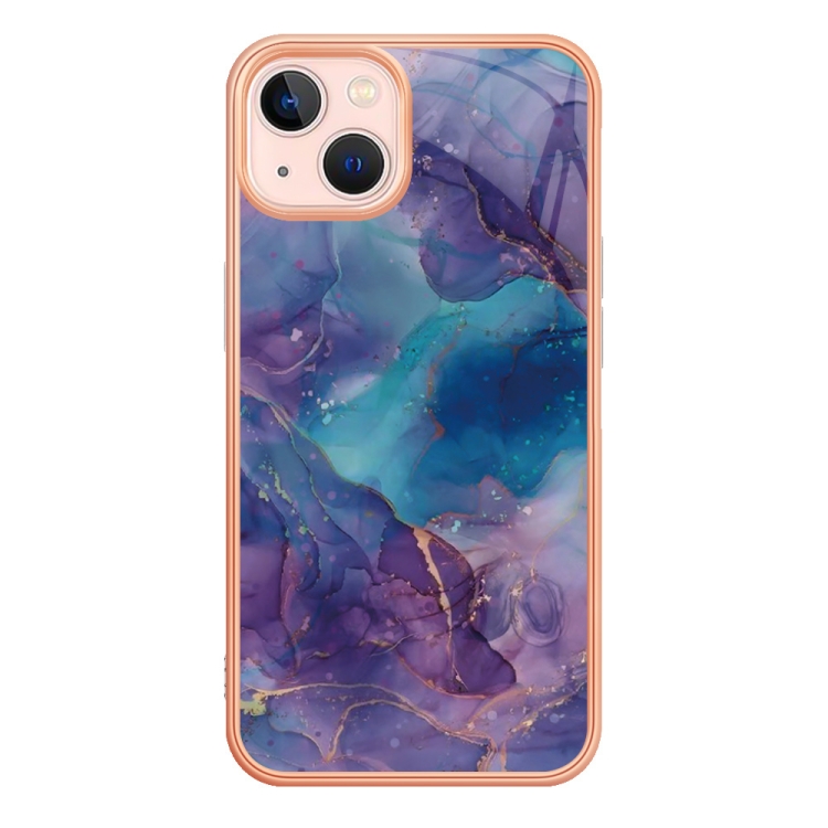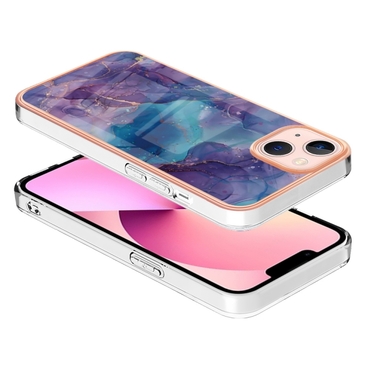 Caja de Teléfono para iPhone 15 Imd Doble Cara Mármol Galvanizado (Púrpura)