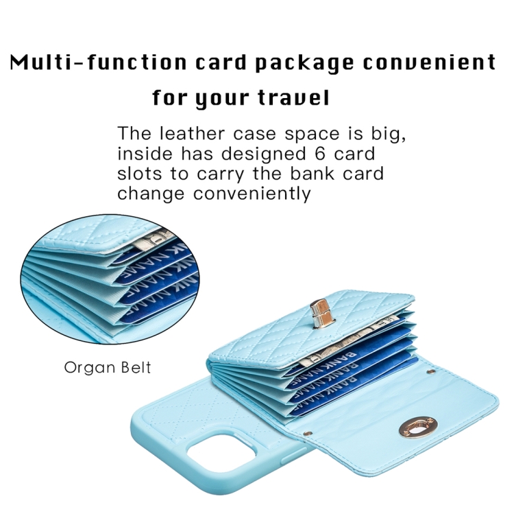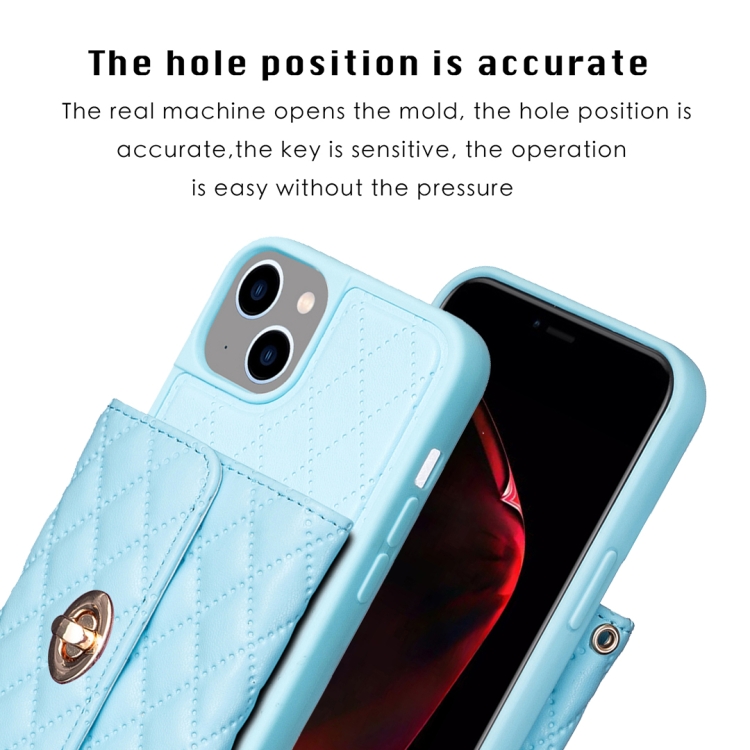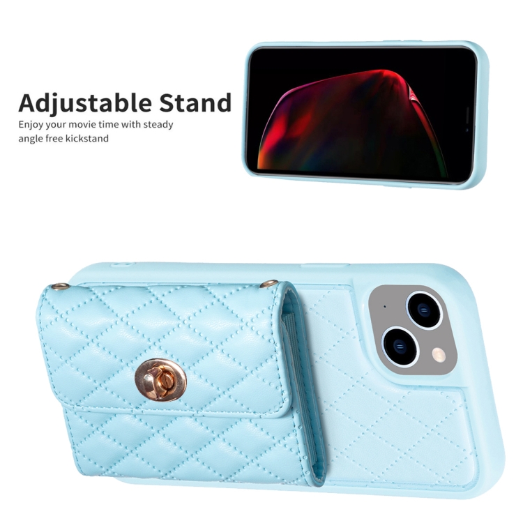 Funda Cartera Horizontal iPhone 15 Rhombic Leather Phone Case (Azul)