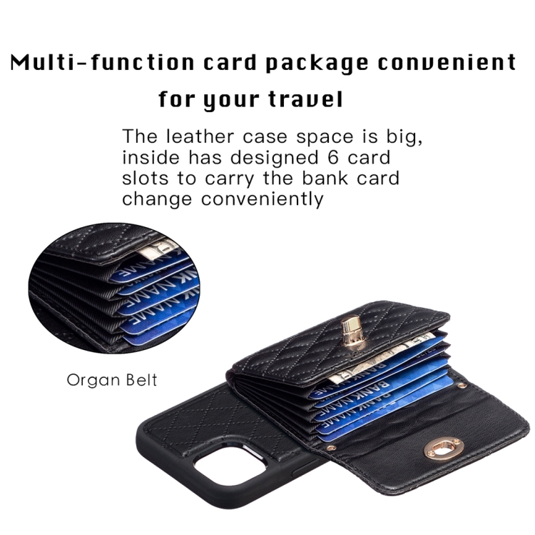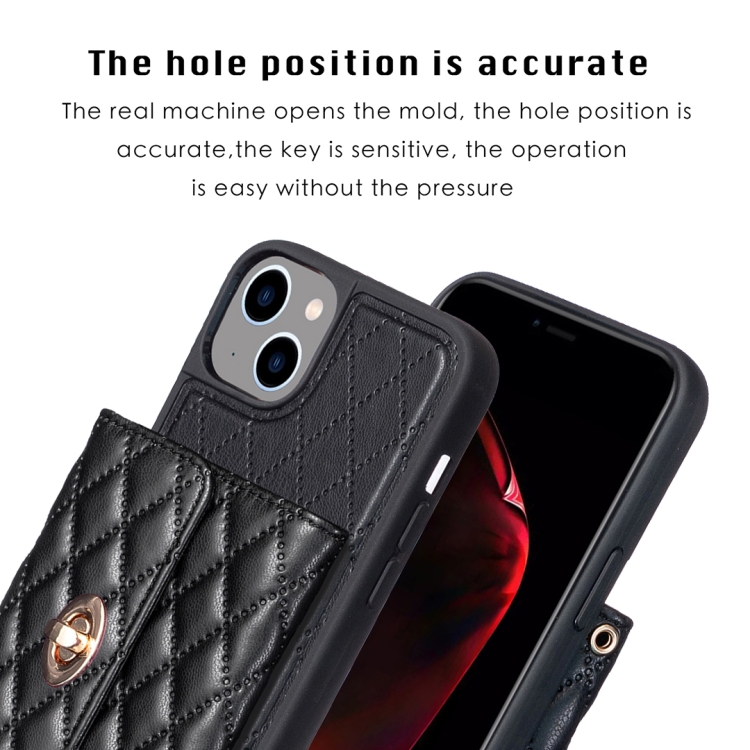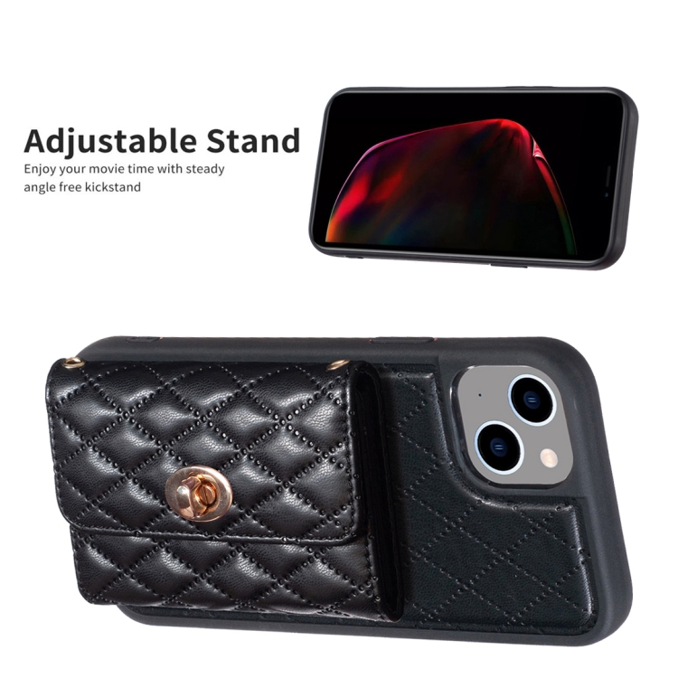 Funda Cartera Horizontal iPhone 15 Rhombic Leather Phone Case (Negro)