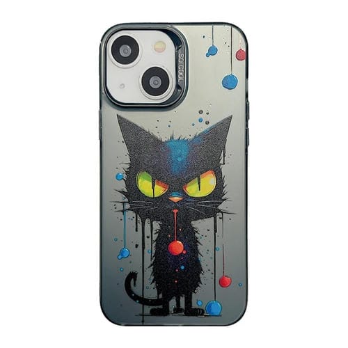 Funda para Teléfono iPhone 15 Cute Animal Pattern Series PC y TPU (Gato Negro)