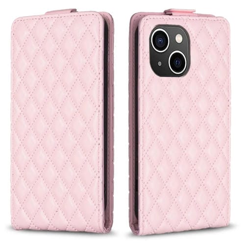 Funda para Teléfono iPhone 15 Diamond Lattice Vertical Flip de Cuero (Rosa)
