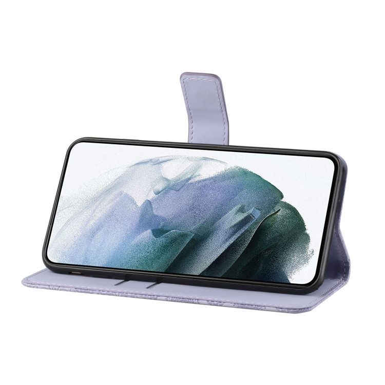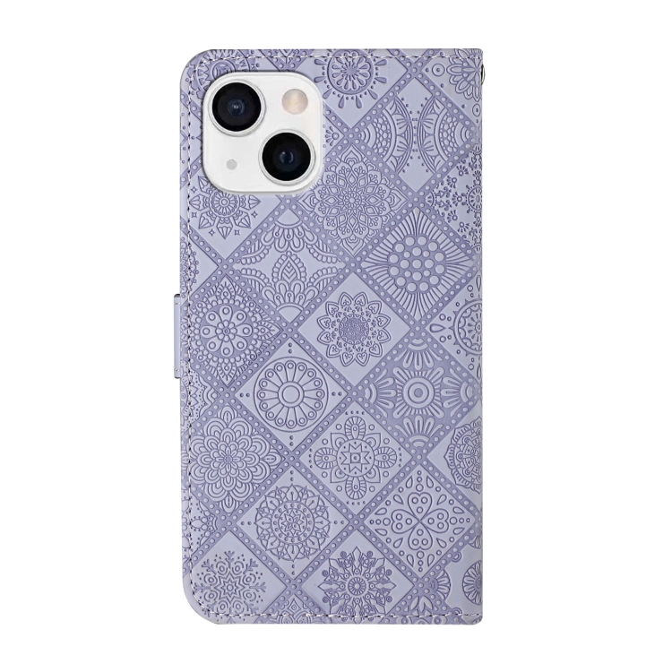 Estuche para Teléfono iPhone 15 Cuero Patrón en Relieve Estilo Étnico (Púrpura)