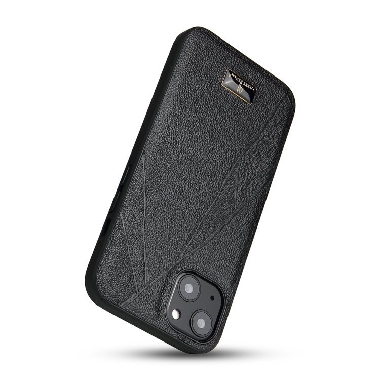 Funda para iPhone 15 Fierre Shann Leather Texture Back Cover Case (Ox Tendon Black)