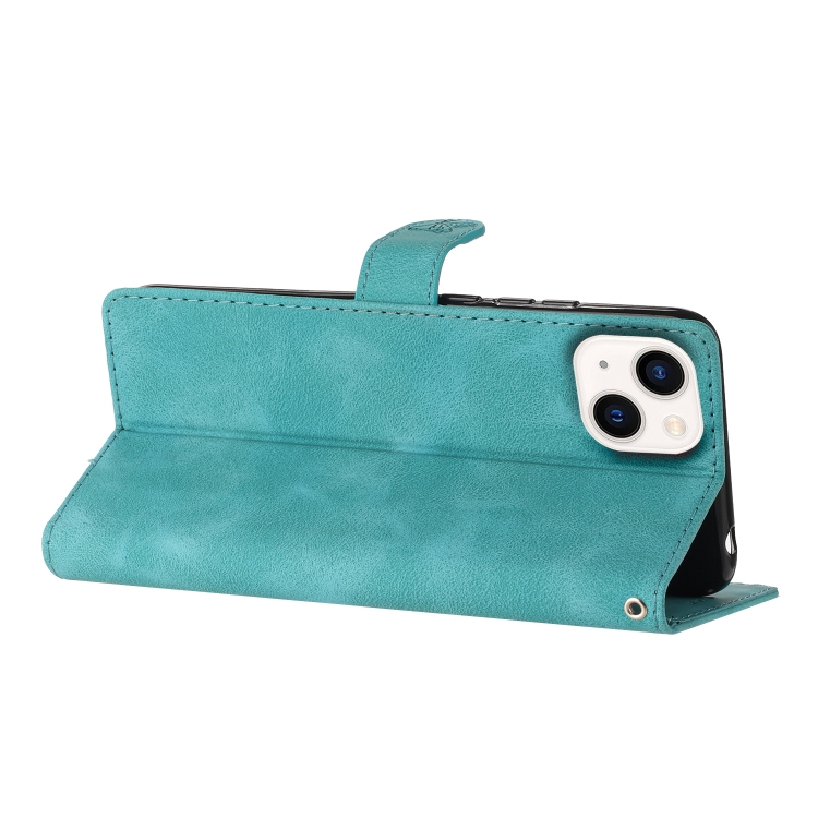 Funda para iPhone 15 Flor Mariposa Relieve Patrón de Cuero para Teléfono (Azul Cielo)