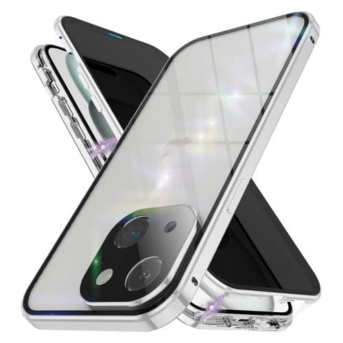 Funda para Teléfono iPhone 15 Vidrio Templado Magnético Doble Cara Anti-Peeping (Plata)