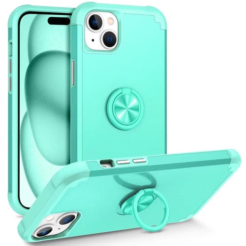 Funda Magnética para Teléfono iPhone 15 L2 con Soporte de Anillo Giratorio (Verde Menta)