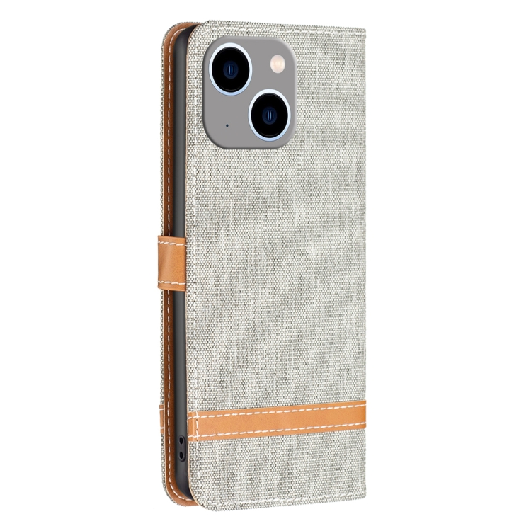 Funda para iPhone 15 Plus Color Block Denim Texture Leather Phone Case (Gris)