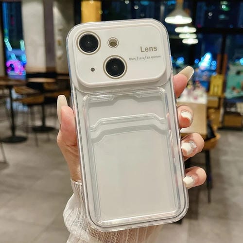 Estuche híbrido para iPhone 15 Plus TPU con ventana grande y ranura para tarjeta (Blanco)