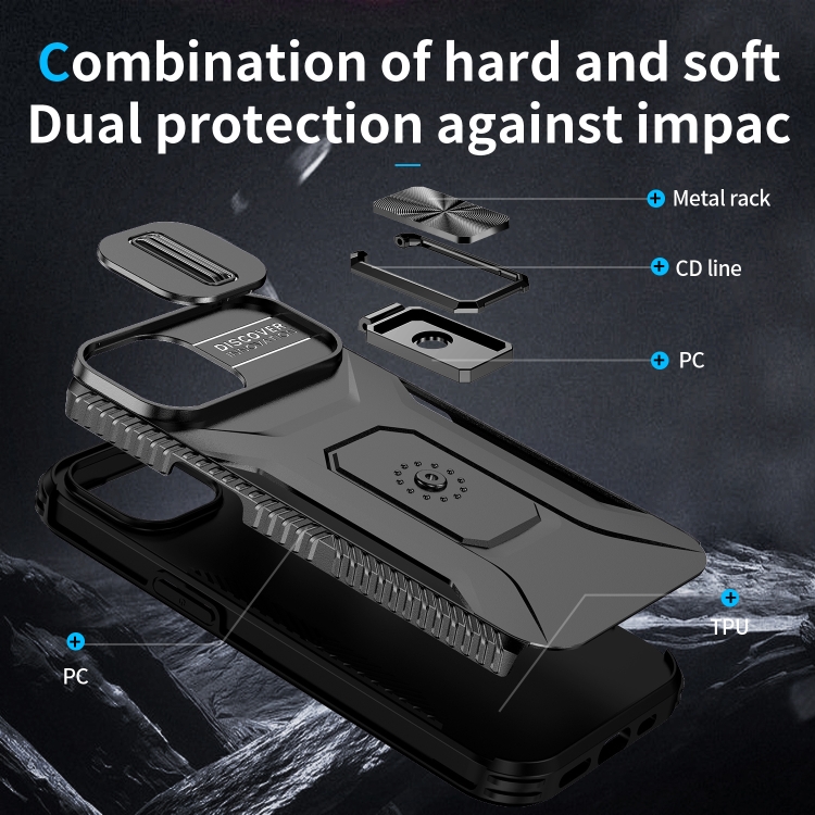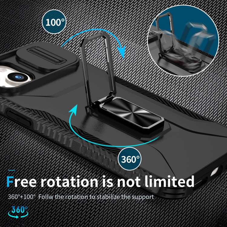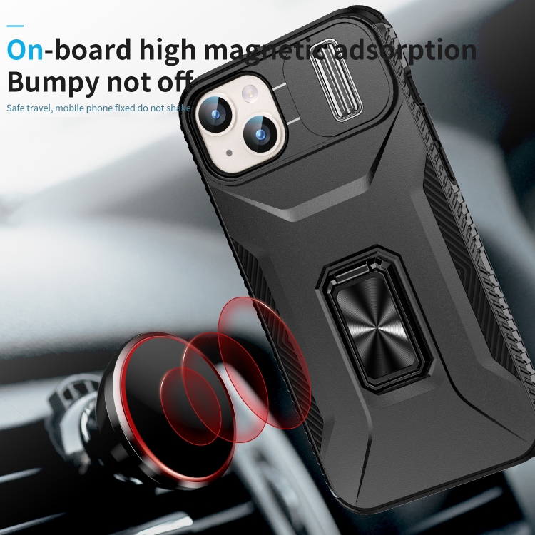Estuche para Teléfono iPhone 15 Plus con Soporte Deslizante para Levas (Negro)