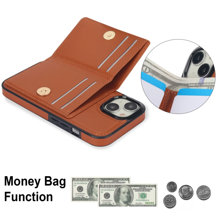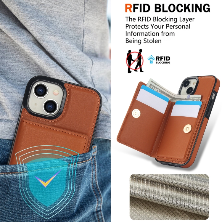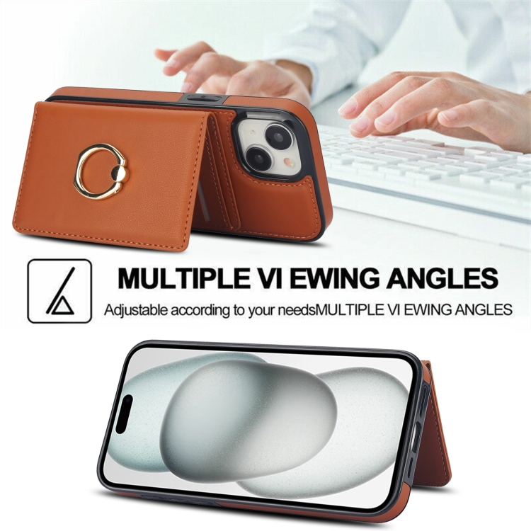 Estuche para teléfono iPhone 15 Plus con soporte para anillo y tarjeta antirrobo Rfid (Marrón)