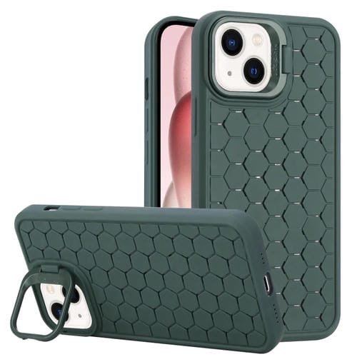 Estuche para teléfono TPU iPhone 15 Plus con soporte para Lente radiante de panal (Verde)