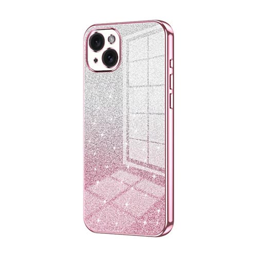 Estuche para Teléfono iPhone 15 Plus Galvanizado con Polvo de Brillo Degradado (Rosa)