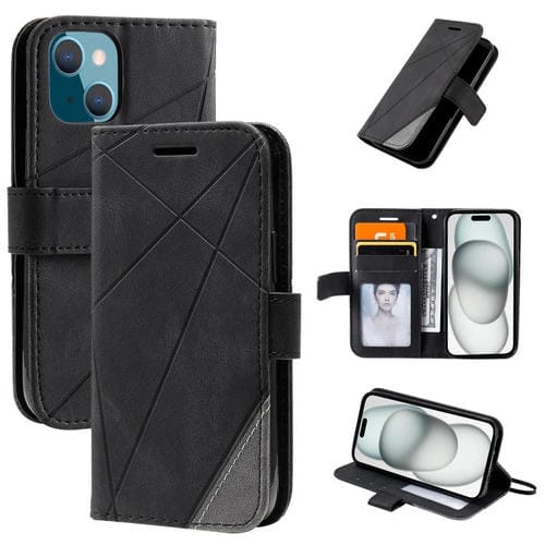 Funda para Teléfono iPhone 15 Plus Cuero con Empalme y Sensación de Piel (Negro)